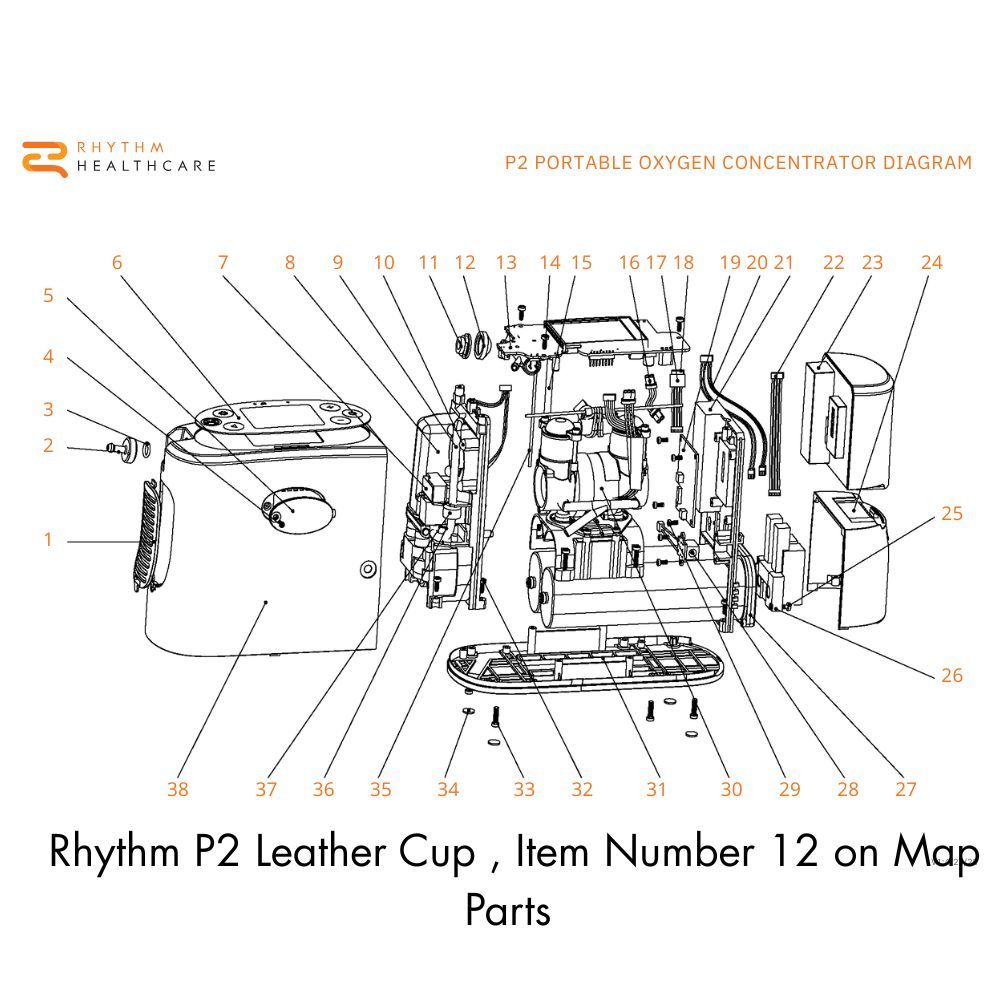 La Rhythm P2 Leather Cup (MPN: P2LRC-2) es un repuesto original (OEM) diseñado específicamente para los concentradores portátiles de oxígeno Rhythm P2 y P2-E.